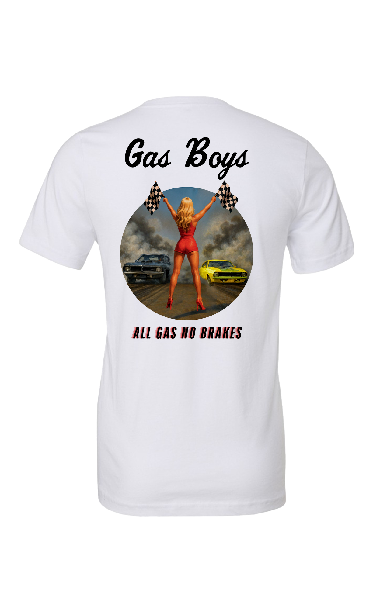 Design: The Gas Boys Racing Girl T-shirt isn’t just clothing — it’s an expression of speed and style. Featuring a striking race-inspired graphic on the back, this tee blends bold energy with everyday wear. Perfect for the track, the streets, or simply making a statement.